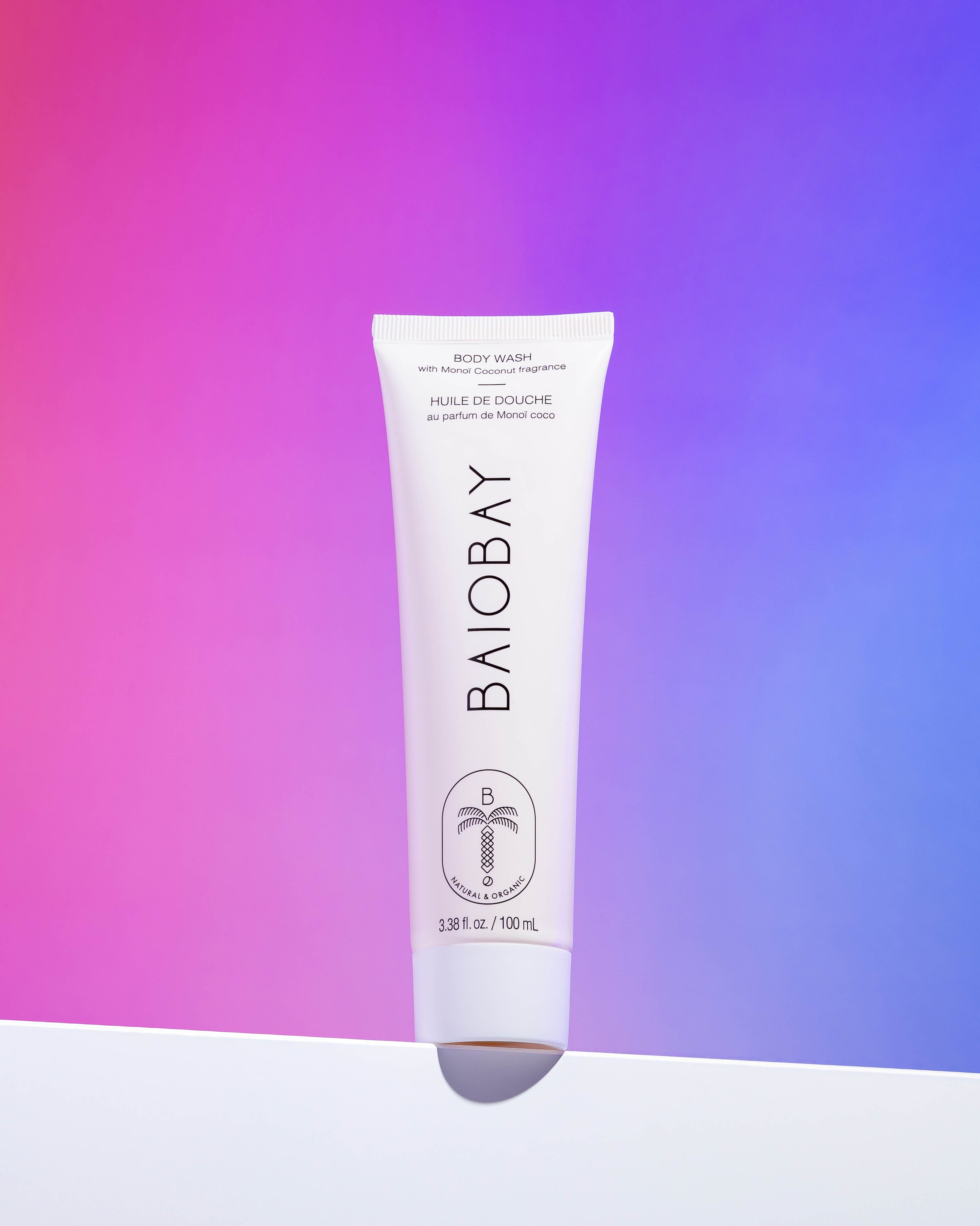 Луксозният веган душ гел за тяло на Baiobay, който ще те впечатли с богата текстура, деликатен аромат на Monoï и нежна, подхранваща формула с алое вера и глицерин.