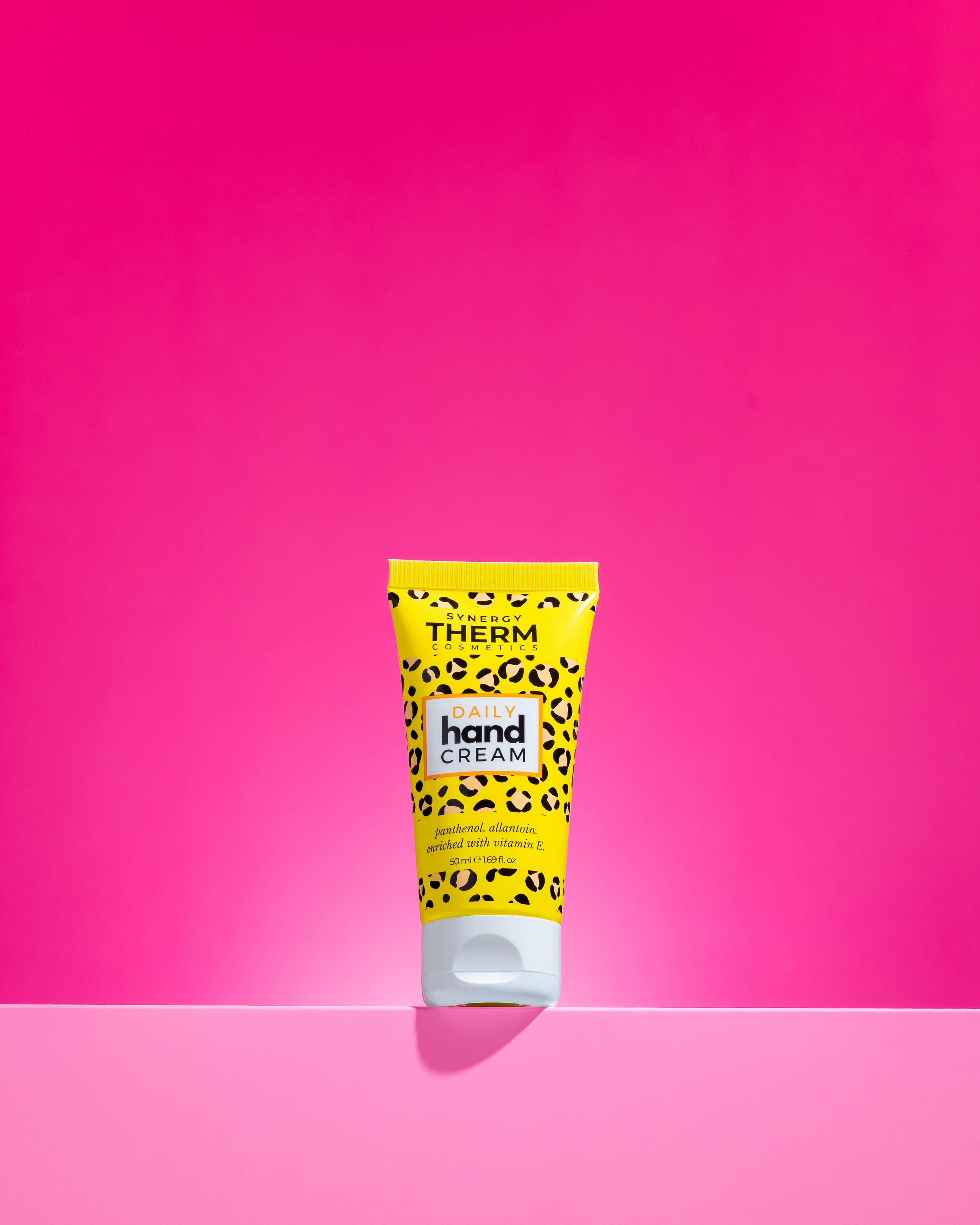 Обогатения с пантенол, алантоин, Витамин Е и термална вода крем за ръце на Syngergy Therm, обещаващ мигновена дълбока хидратация, без лепкаво усещане.